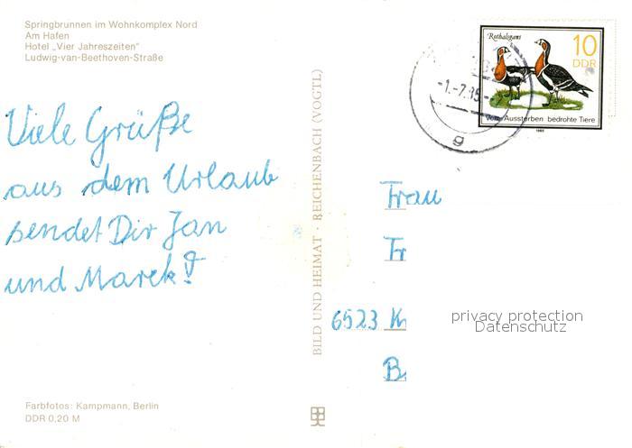 73124111 alte Postkarte Wolgast Mecklenburg-Vorpommern Hafen Hotel-Vier-Jahreszeiten Ludwig-van-Beethoven Strasse postalisch gelaufen Erhaltung siehe scans [LiesaD40] KatCode: 11110013059101