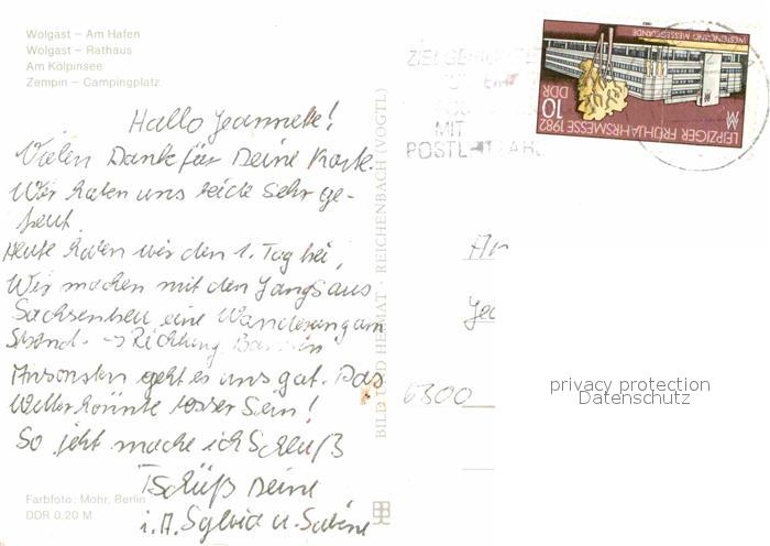 72631720 alte Postkarte Wolgast Mecklenburg-Vorpommern Hafen Rathaus Koelpinsee Zempin Camping postalisch gelaufen Erhaltung siehe scans [LiesaD40] KatCode: 11110013059101