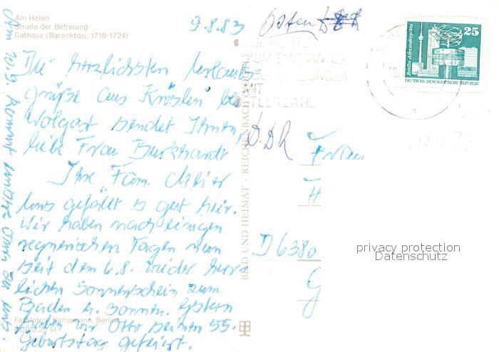 73108142 alte Postkarte Wolgast Mecklenburg-Vorpommern Hafen Strasse der Befreiung Rathaus postalisch gelaufen Erhaltung siehe scans [NatalD47] KatCode: 11110013059101