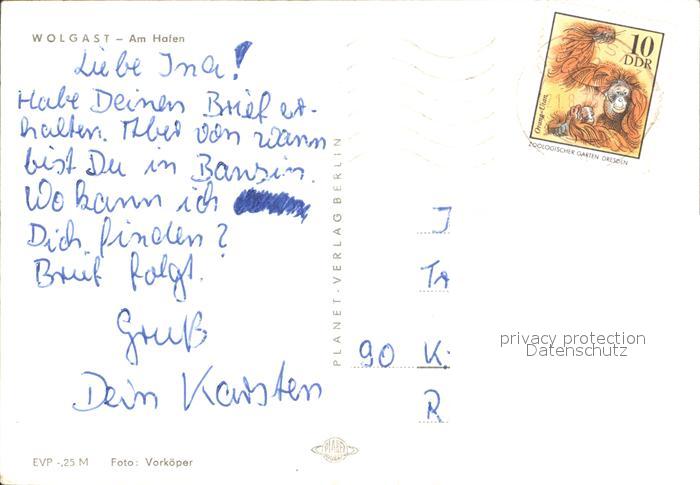 71986590 alte Postkarte Wolgast Mecklenburg-Vorpommern Hafenpartie Bruecke Frachter postalisch gelaufen Erhaltung siehe scans KatCode: 11110013059101