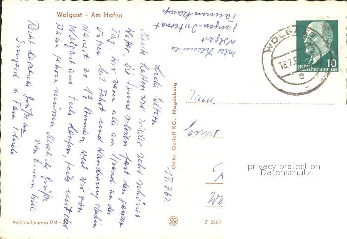 72298311 alte Postkarte Wolgast Mecklenburg-Vorpommern Hafenpartie Fischkutter postalisch gelaufen Erhaltung siehe scans KatCode: 11110013059101