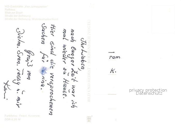73061757 Wolgast Mecklenburg-Vorpommern HO Gaststaette Vier Jahreszeiten Rathaus Stadtpanorama Strasse der Befreiung Wohnblocks Wappen postalisch nicht gelaufen Erhaltung siehe scans [FriedD77] KatCode: 11110013059101