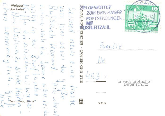 72983904 alte Postkarte Wolgast Mecklenburg-Vorpommern Partie am Hafen Bruecke postalisch gelaufen Erhaltung siehe scans [FriedD77] KatCode: 11110013059101