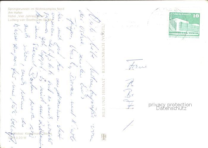 72335483 alte Postkarte Wolgast Mecklenburg-Vorpommern Springbrunnen Wohnkomplex Nord Hafen Hotel Vier Jahreszeiten Ludwig van Beethoven Strasse postalisch gelaufen Erhaltung siehe scans KatCode: 11110013059101