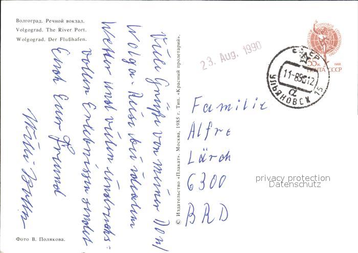 old postcard Wolgograd Hafen postalisch gelaufen Erhaltung siehe scans