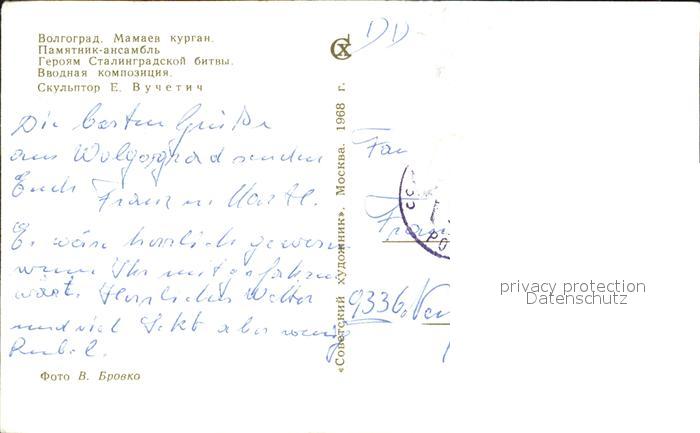 old postcard Wolgograd Mamajew-Huegel postalisch gelaufen Erhaltung siehe scans [NatalD47 kv013box]