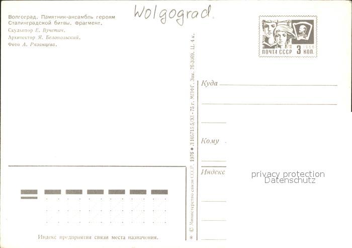 Wolgograd Monumentalstatue Mutter Heimat ruft postalisch nicht gelaufen Ganzsache (eingedruckte Briefmarke) Erhaltung siehe scans