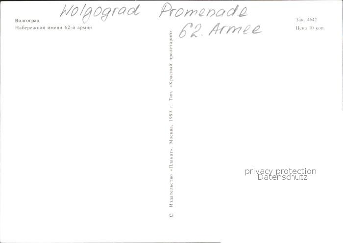 Wolgograd Promenade 62. Armee postalisch nicht gelaufen Erhaltung siehe scans