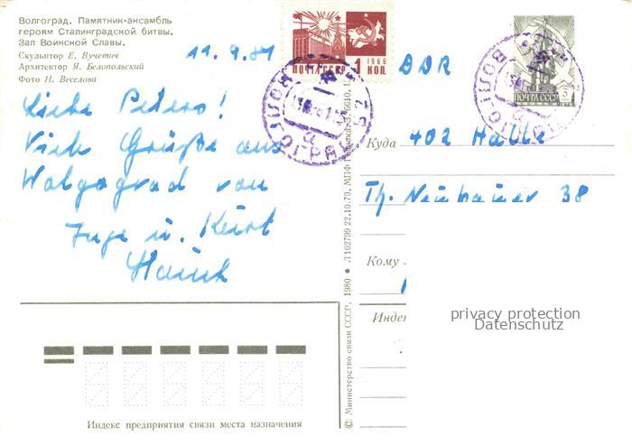 74042136 old postcard Wolgograd Volgograd RU Denkmal Ansambel Helden Stalingrad Schlacht postalisch gelaufen Erhaltung siehe scans [IrynaD87] KatCode: 11440