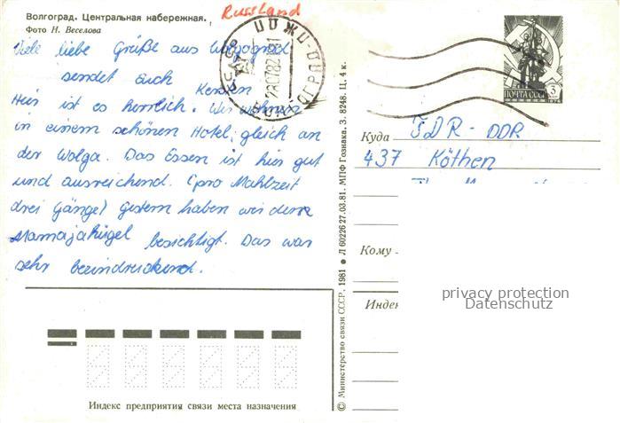 74042079 old postcard Wolgograd Volgograd RU Zentral Promenade postalisch gelaufen Erhaltung siehe scans [IrynaD87] KatCode: 11440