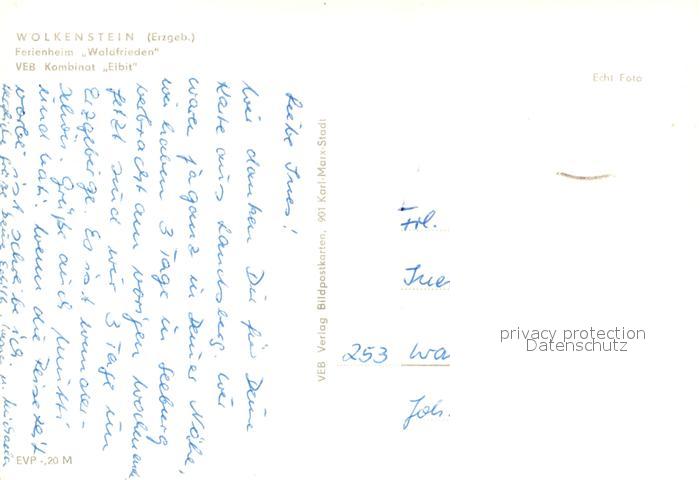 73072204 alte Postkarte Wolkenstein Erzgebirge Ferienheim Waldfrieden postalisch gelaufen Erhaltung siehe scans [WerneD78] KatCode: 11110014181390