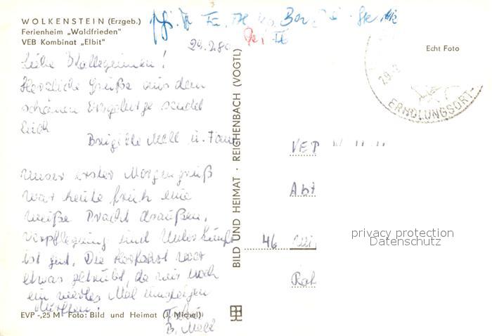73072226 alte Postkarte Wolkenstein Erzgebirge Ferienheim Waldfrieden postalisch gelaufen Erhaltung siehe scans [WerneD78] KatCode: 11110014181390