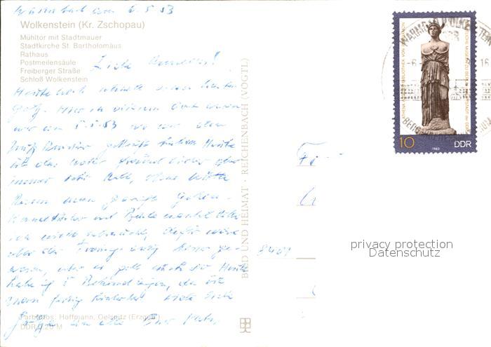 72372694 alte Postkarte Wolkenstein Erzgebirge Muehltor Stadtmauer Stadtkirche St. Bartholomaeus Rathaus Schloss postalisch gelaufen Erhaltung siehe scans KatCode: 11110014181390