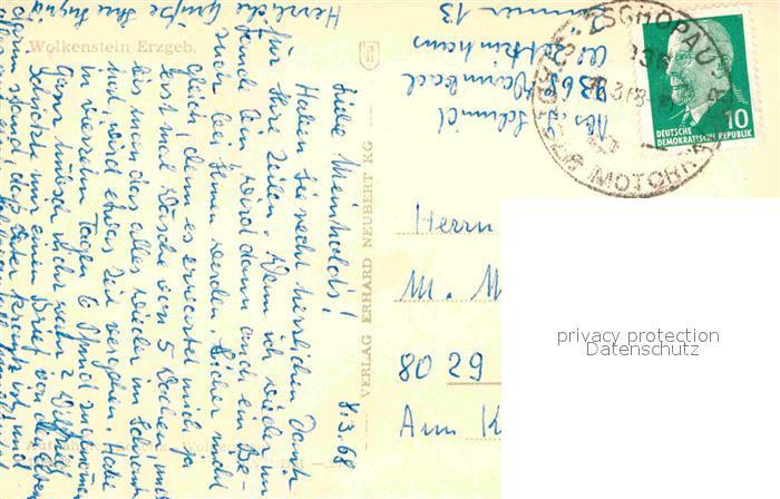 72633703 alte Postkarte Wolkenstein Erzgebirge Ortspartie an der Kirche im Winter postalisch gelaufen Erhaltung siehe scans [FriedD77] KatCode: 11110014181390
