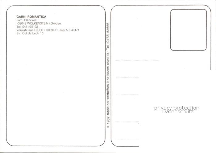 Wolkenstein Groeden Garni Hotel Romantica Alpen postalisch nicht gelaufen Erhaltung siehe scans