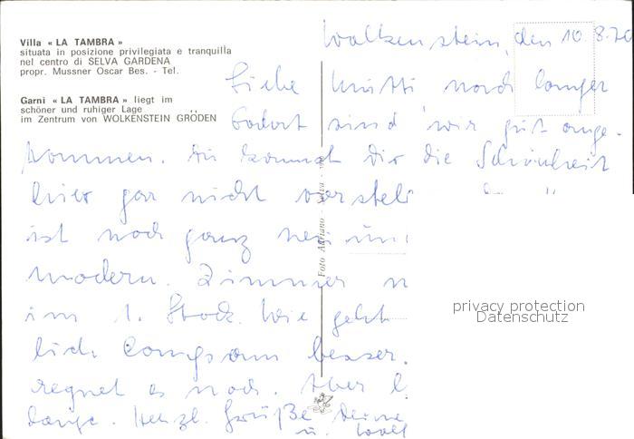 Wolkenstein Groeden Garni Villa La Tambra postalisch nicht gelaufen Erhaltung siehe scans