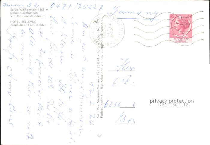 old postcard Wolkenstein Groeden Hotel Bellevue postalisch gelaufen Erhaltung siehe scans