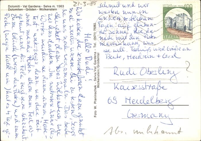 old postcard Wolkenstein Groeden im Winter postalisch gelaufen Erhaltung siehe scans