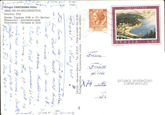 old postcard Wolkenstein Groeden Rifugio Panorama Huette postalisch gelaufen Erhaltung siehe scans