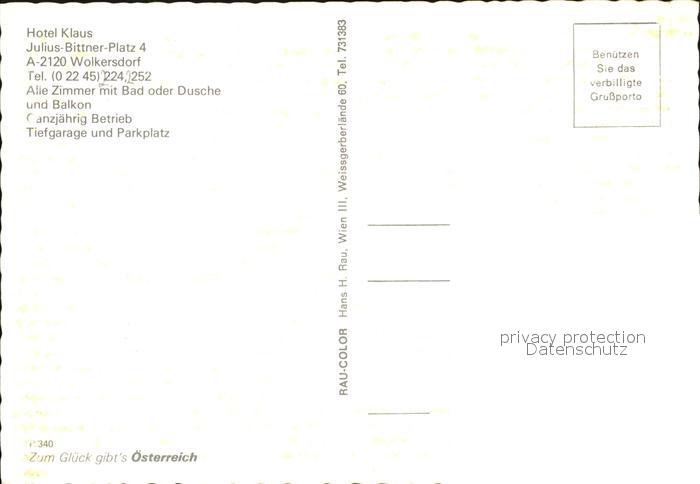 72420745 Wolkersdorf Weinviertel Hotel Klaus postalisch nicht gelaufen Erhaltung siehe scans KatCode: 11390126031655