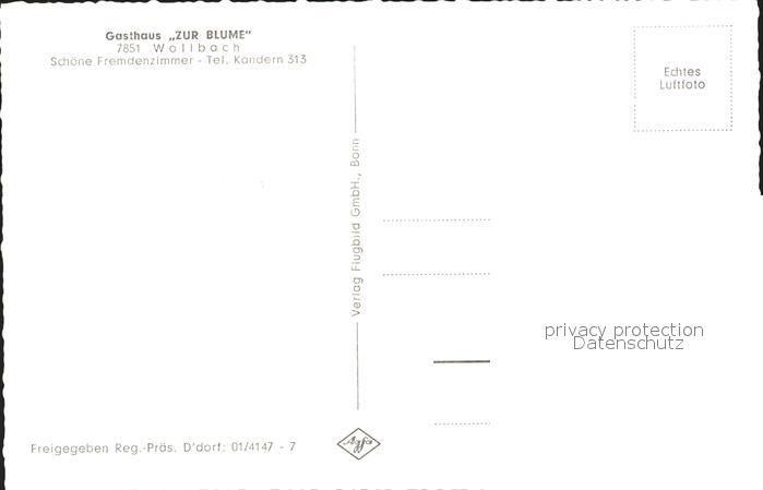 31841071 Wollbach Kandern Gasthaus Zur Blume Fliegeraufnahme postalisch nicht gelaufen Erhaltung siehe scans KatCode: 11110008336045