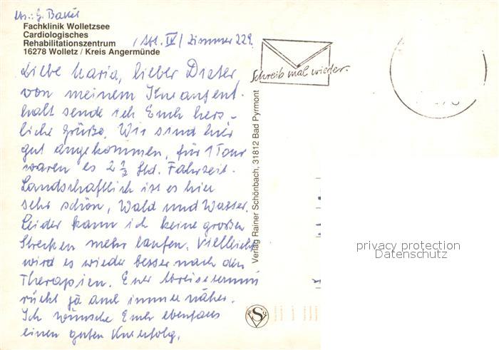 73654878 alte Postkarte Wolletz Fachklinik Wolletzsee postalisch gelaufen Erhaltung siehe scans [WerneD78] KatCode: 11110012073008