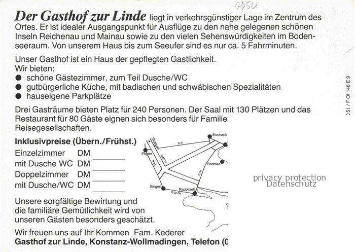 74050807 Wollmatingen Gasthof zur Linde Gastraeume Panorama postalisch nicht gelaufen Werbekarte (keine Postkarte) Erhaltung siehe scans [WerneD78] KatCode: 11110008335043