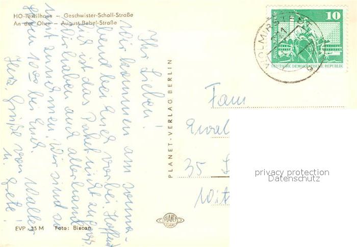 33049461 alte Postkarte Wolmirstedt HO Textilhaus Geschwister-Scholl-Strasse postalisch gelaufen Erhaltung siehe scans [NatalD47] KatCode: 11110015083565