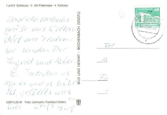 73901161 alte Postkarte Woltersdorf Angermuende Schleuse Am Flakensee Kalksee postalisch gelaufen Erhaltung siehe scans [FriedD77] KatCode: 11110012073097