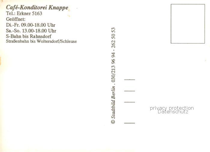 73852299 Woltersdorf Erkner Cafe Konditorei Knappe postalisch nicht gelaufen Erhaltung siehe scans [FriedD77] KatCode: 11110012067544