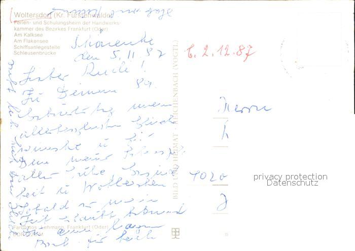 72324070 Woltersdorf Erkner Ferienheim Handwerkskammer Frankfurt Oder Kalksee Flakensee Schiffsanlegestelle Schleusenbruecke postalisch nicht gelaufen Erhaltung siehe scans KatCode: 11110012067544