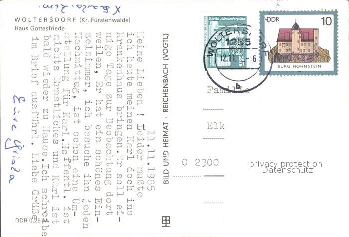71913395 alte Postkarte Woltersdorf Erkner Haus Gottesfriede postalisch gelaufen Erhaltung siehe scans KatCode: 11110012067544