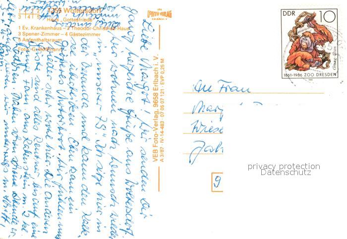 73549327 alte Postkarte Woltersdorf Erkner Haus Gottesfriede Ev Krankenhaus Spener Zimmer Gaestezimmer Aufenthaltsraum postalisch gelaufen Erhaltung siehe scans [WerneD78] KatCode: 11110012067544