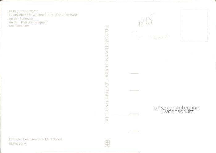 72287529 Woltersdorf Erkner HOG Strand Cafe Luxusschiff Weissen Flotte Friedrich Wolf Schleuse postalisch nicht gelaufen Erhaltung siehe scans KatCode: 11110012067544