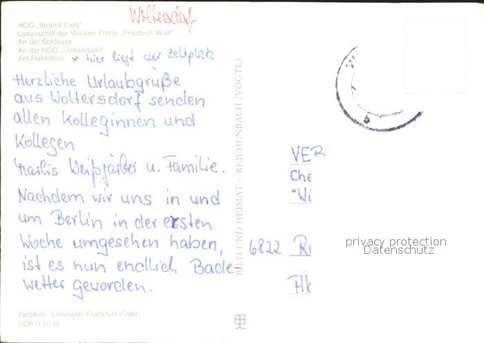 72324068 alte Postkarte Woltersdorf Erkner HOG Strandcafe MS Friedrich Wolf Schleuse HOG Liebesquelle Flakensee postalisch gelaufen Erhaltung siehe scans KatCode: 11110012067544