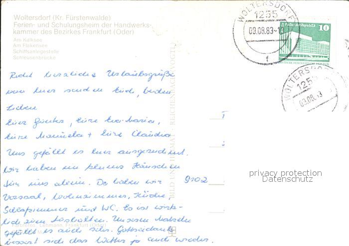72424009 alte Postkarte Woltersdorf Erkner Kalksee Flakensee Schleusenbruecke postalisch gelaufen Erhaltung siehe scans KatCode: 11110012067544