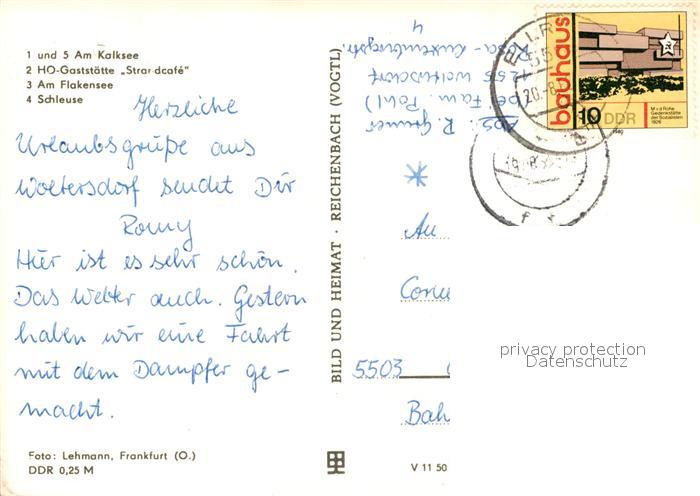 73127662 alte Postkarte Woltersdorf Erkner Kalksee HO Gaststaette Strandcafe Flakensee Schleuse postalisch gelaufen Erhaltung siehe scans [KathaD81] KatCode: 11110012067544