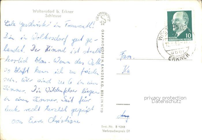 72329818 alte Postkarte Woltersdorf Erkner Schleuse postalisch gelaufen Erhaltung siehe scans KatCode: 11110012067544