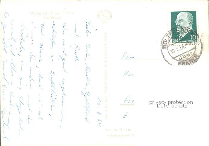72326758 alte Postkarte Woltersdorf Erkner Schleuse Frachter postalisch gelaufen Erhaltung siehe scans KatCode: 11110012067544