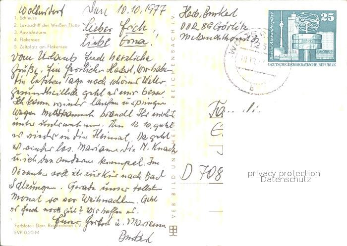 72337101 alte Postkarte Woltersdorf Erkner Schleuse Luxusschiff Weisse Flotte Aussichtsturm Flakensee Zeltplatz postalisch gelaufen Erhaltung siehe scans KatCode: 11110012067544