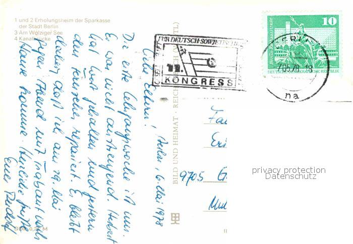 72728367 alte Postkarte Wolzig Erholungsheim der Sparkasse der Stadt Berlin Wolziger See Kanalbruecke postalisch gelaufen Erhaltung siehe scans [FriedD77] KatCode: 11110012061217