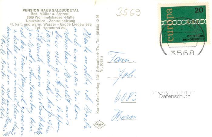 73782403 alte Postkarte Wommelshausen Pension Haus Salzboedetal Wommelshaeuser Huette Aussenansichten postalisch gelaufen Erhaltung siehe scans [LiesaD40] KatCode: 11110006534003