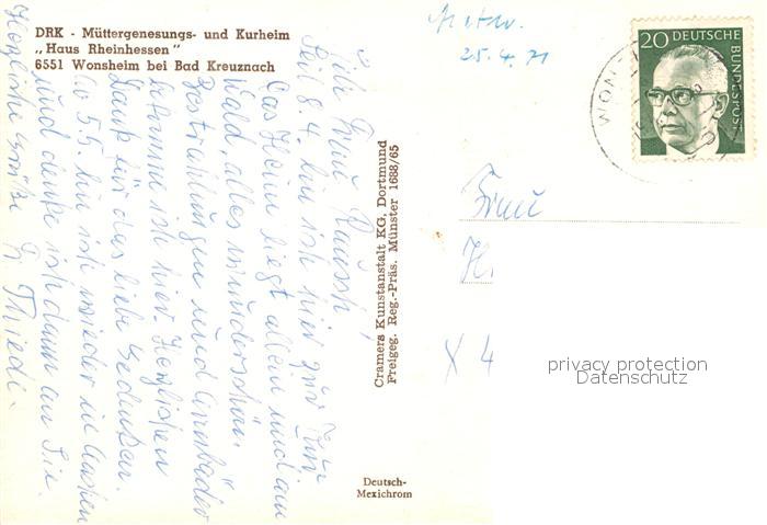 73163439 alte Postkarte Wonsheim Fliegeraufnahme mit DRK Muettergenesungsheim Haus Rheinhessen postalisch gelaufen Erhaltung siehe scans [WerneD78] KatCode: 11110007331075