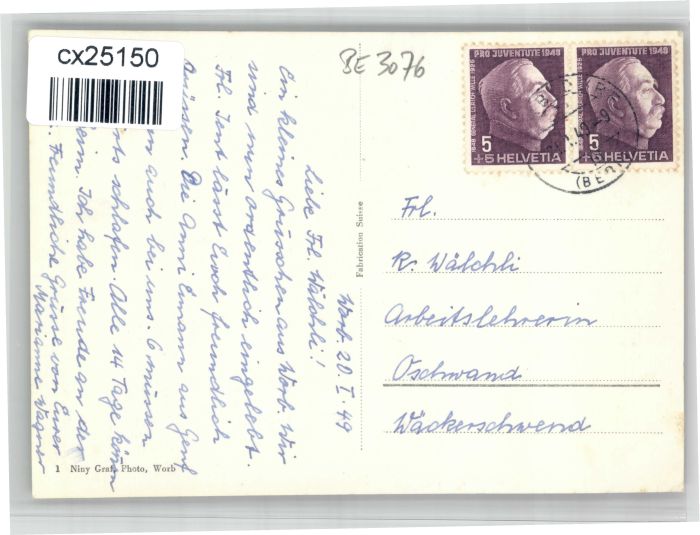 10753381 alte Postkarte Worb Schule postalisch gelaufen KatCode: 11470060180368