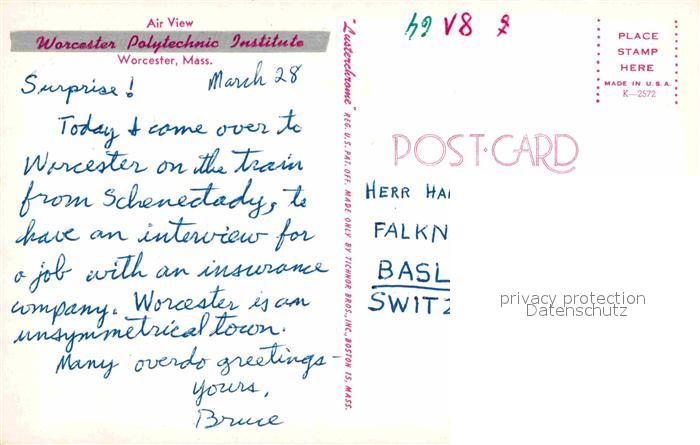 12714997 Worcester Massachusetts Fliegeraufnahme Worcester Polytechnic Institute postalisch nicht gelaufen Erhaltung siehe scans [NatalD47] KatCode: 14140230000000