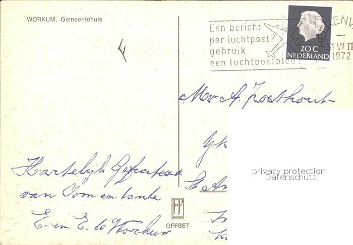 old postcard Workum Gemeentehuis postalisch gelaufen Erhaltung siehe scans