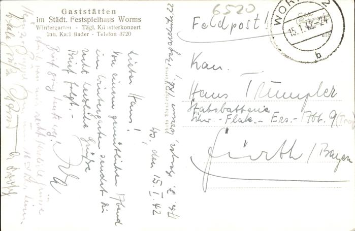 41211761 Worms Gaststätte Städt. Festspielhaus KatCode 11110007319000