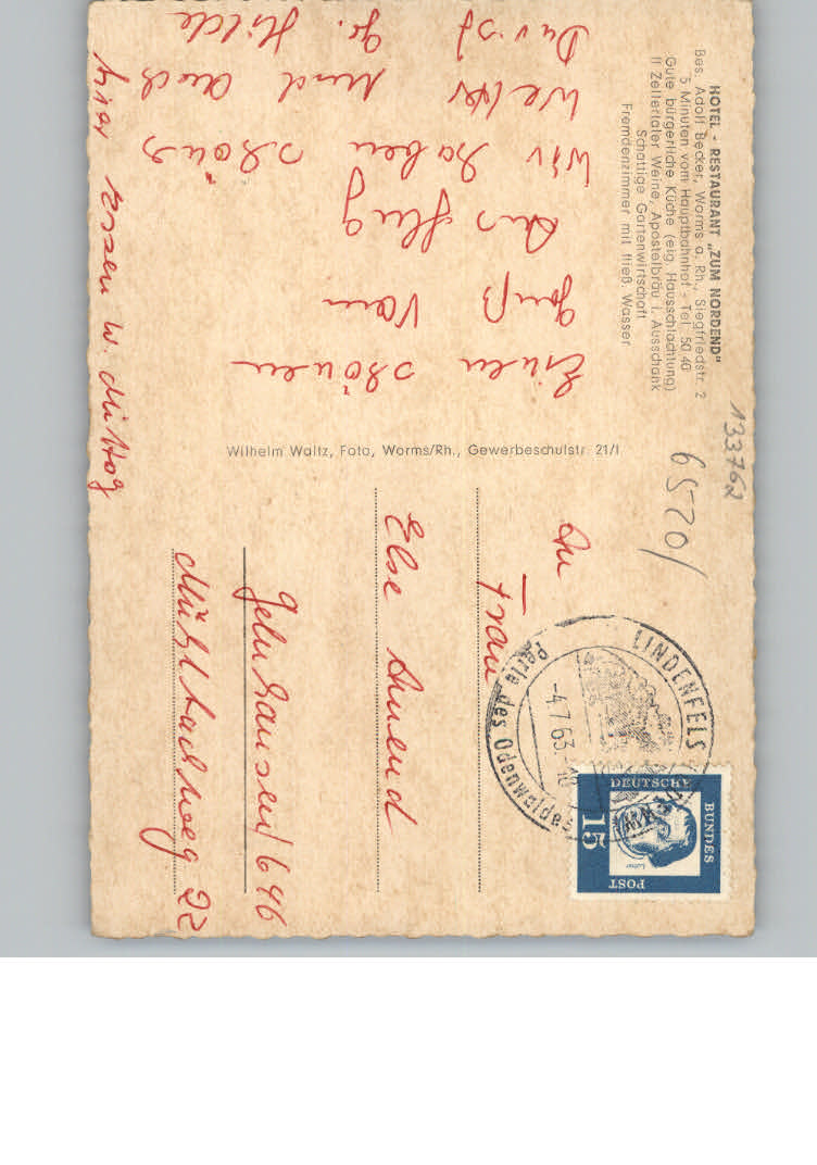 31146599 Worms Hotel Zum Nordend postalisch nicht gelaufen KatCode: 11110007319000