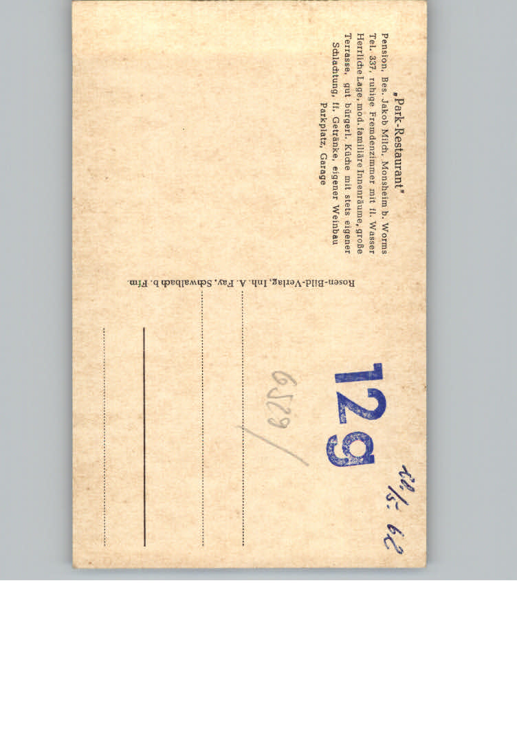 31146380 Worms Pension Park-Restaurant postalisch nicht gelaufen KatCode: 11110007319000