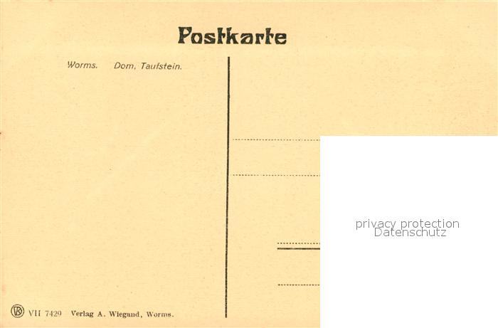 43511862 Worms Rhein Dom Taufstein postalisch nicht gelaufen Erhaltung siehe scans [KathaD81] KatCode: 11110007319000
